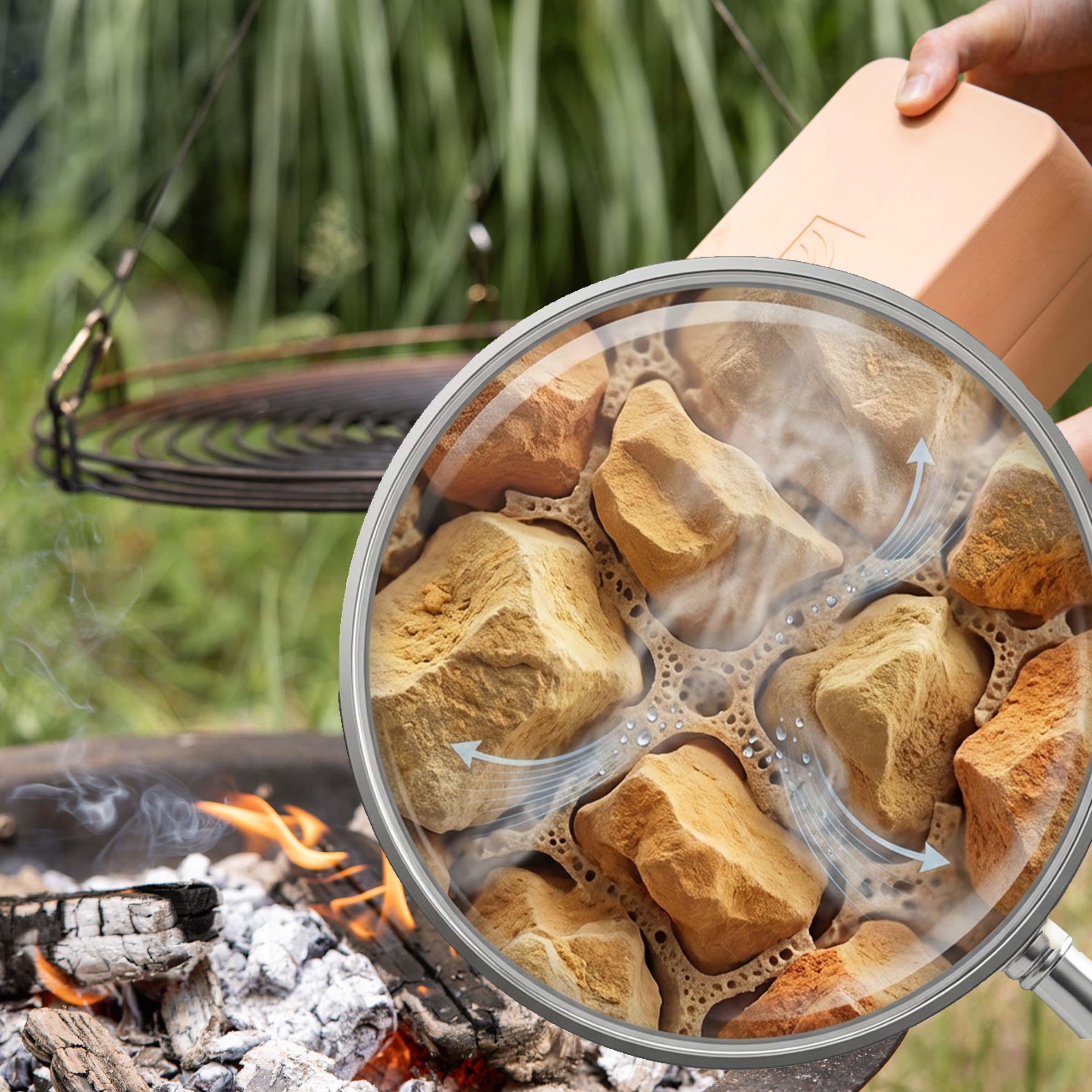 Légère en main, puissante à l'usage. Conçue pour des températures jusqu'à 900 °C, elle permet une cuisson intuitive : au four, au gril, sur les braises ou au feu de bois.