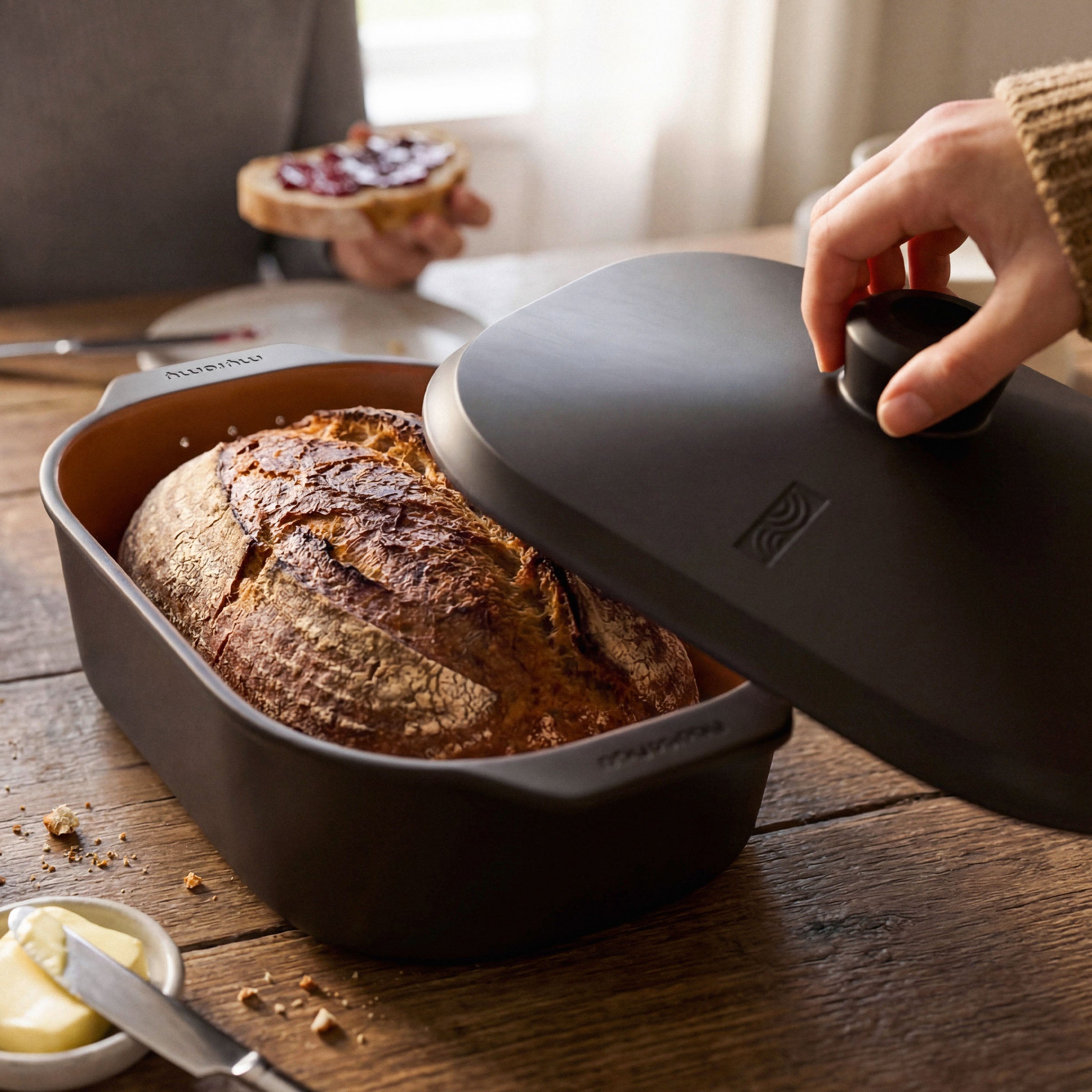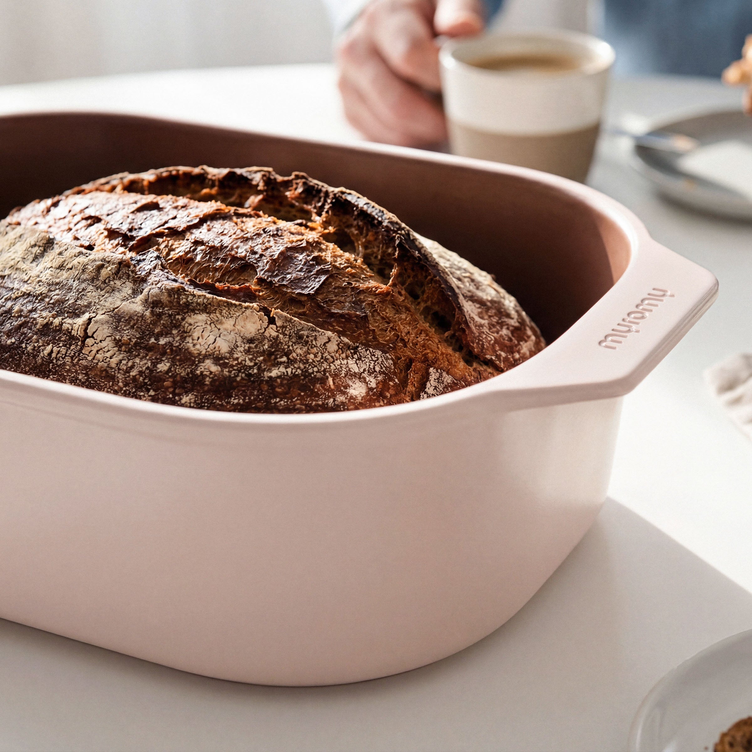 La nouvelle génération des iconiques cocottes en terre du Westerwald : myromy mise sur une argile naturelle, résistante aux chocs thermiques, qui rend le trempage superflu.