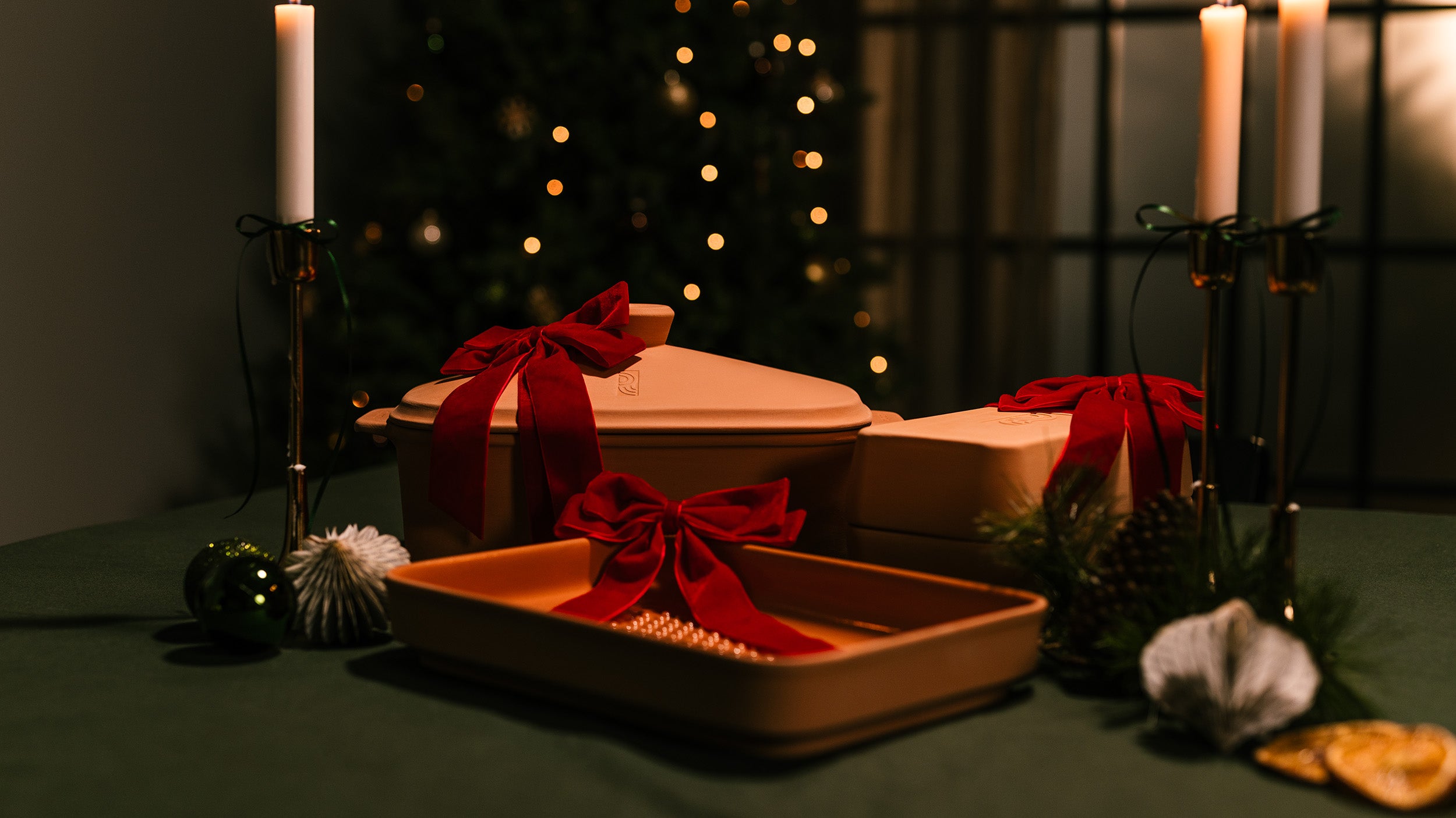 Jedes Gericht entfaltet in unseren Keramiken seine volle aromatische Tiefe – ob du Brot für ein Adventsfrühstück bäckst, einen Braten für die Festtafel schmoren lässt oder ein Gratin im eigenen Saft garen lässt. Die herausragenden keramischen Eigenschaften des Westerwälder Naturtons sorgen für eine schonend-sanfte, nährstoff- und vitaminerhaltende, fettarme und zugleich schnelle Garung. Ihre schlichte Eleganz macht sie zudem zum stilvollen Blickfang auf dem gedeckten Tisch.