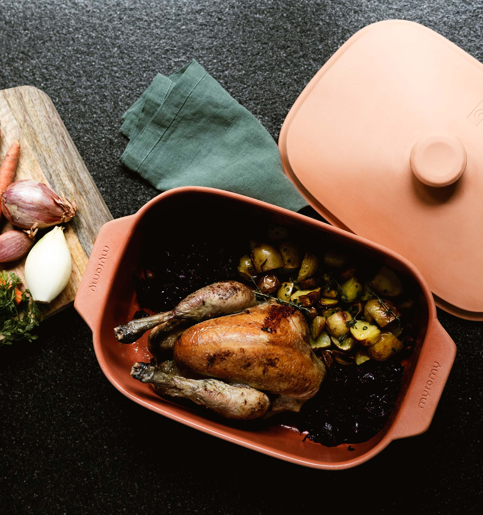 Die nächste Generation der ikonischen Ton-Bräter aus dem Westerwald: myromy setzt auf eine schockresistente Ton-Masse auf natürlicher Basis, die eine Wässerung vor dem Gebrauch überflüssig macht. Einfacher, komfortabler, sofort und vielseitig einsatzbereit – mit all den Vorteilen traditioneller Kochkeramik.